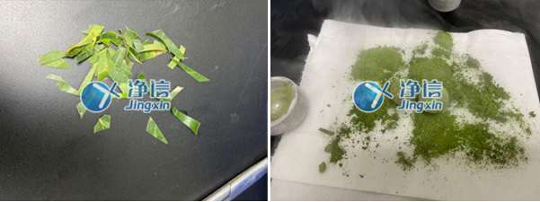 將樟樹葉片剪小段后放入若干ML研磨罐中,加入特定規(guī)格的研磨介質,然后把研磨罐放入液氮眾泡制幾分鐘,泡制至超低溫后放進上海凈信多樣品研磨儀內,設置好研磨儀工作時間和頻率,啟動設備。