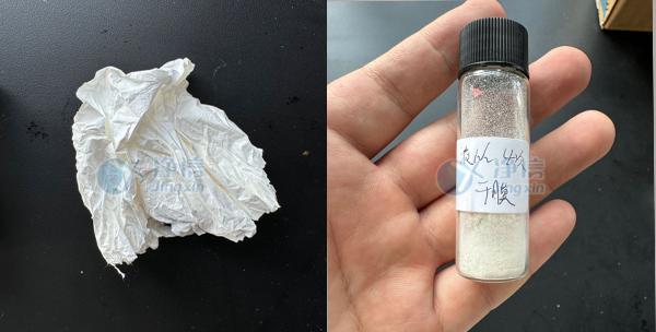 4、實驗結束后,取出研磨罐、倒出研磨后的粉末。前后對比03