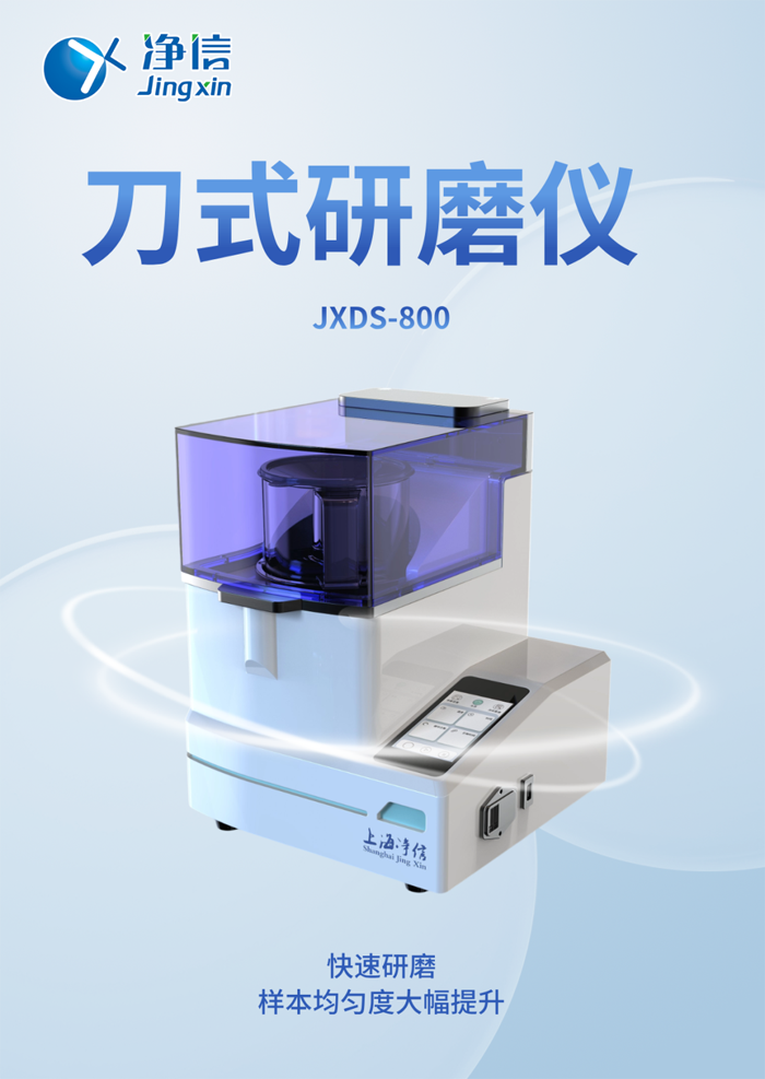1. 所需儀器:凈信刀式研磨儀JXDS-800,不銹鋼刀頭一組,PP研磨杯一個