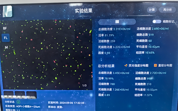 實驗結果也印證了這一點:儀器制備的懸液濁度僅 0.89.細胞平均直徑 10.52μm(符合皮膚細胞正常范圍),后續做流式檢測時,雜質干擾信號比手動法低了 18%。