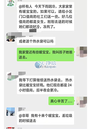 除了儀器設(shè)備,凈信人也在這場戰(zhàn)“役”中獻(xiàn)上了自己綿薄之力。雖不能上一線,卻奉上了自己的善舉,盡自己所能共抗疫情。自愿報名志愿者,在寒冷的冬天一站就是24小時。捐款捐物,捐口罩、防護(hù)用品、暖寶寶、以及一些食品物品。