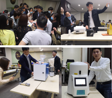 公司也推薦了幾位老銷售現場演示,然后由新員工演練,大家一起給建議,提升各個銷售員的產品知識及銷售技巧?,F場演示了新款毛發處理儀、三維離心冷凍研磨儀、浸入式液氮冷凍研磨儀、全自動錘式旋風磨......