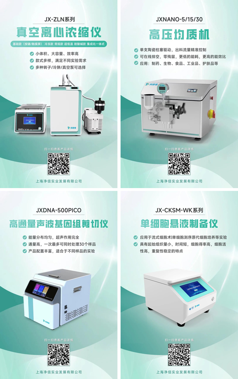 十幾年來(lái)凈信不斷進(jìn)行自我創(chuàng)新與突破。通過(guò)持續(xù)優(yōu)化產(chǎn)品性能和提升服務(wù)質(zhì)量,我們實(shí)現(xiàn)了從單一產(chǎn)品到多元化發(fā)展的轉(zhuǎn)變,拓展了市場(chǎng)影響力。上海凈信科研者系列產(chǎn)品也在上市推廣中!真空離心濃縮儀、高壓均質(zhì)機(jī)、單細(xì)胞懸液儀、高通量聲波基因組剪切儀。