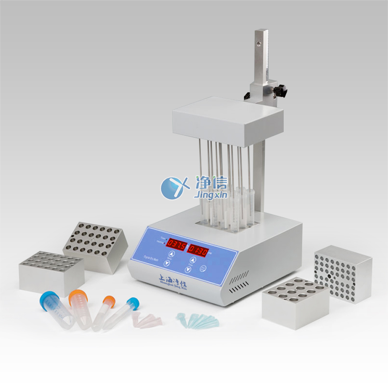 JXDC-10氮?dú)獯祾邇x采用微電腦和PID模糊控制技術(shù),利用高純度鋁材料做為導(dǎo)熱介質(zhì),以代替?zhèn)鹘y(tǒng)的水浴裝置,具有使用方便、控溫范圍大、精度高等特點(diǎn)。其工作原理是將氮?dú)饣蚩諝饪焖佟⑦B續(xù)、可控地吹到加熱樣品表面,并根據(jù)被濃縮溶劑的蒸發(fā)速度和沸點(diǎn),設(shè)定加熱溫度,實(shí)現(xiàn)大量樣品的快速濃縮。