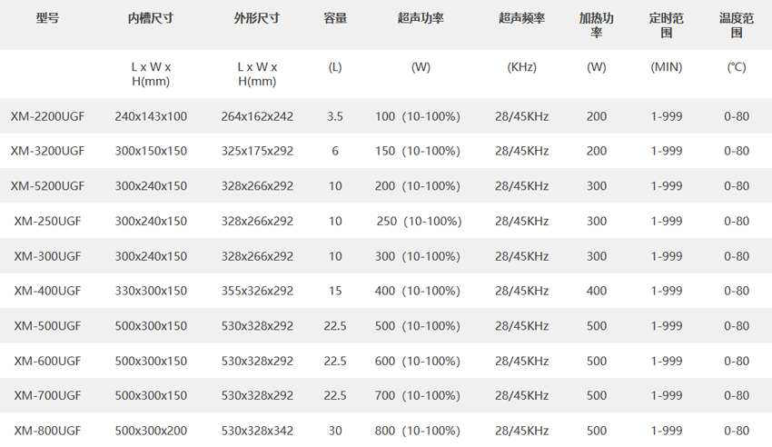 超聲波清洗機(jī)規(guī)格參數(shù):
