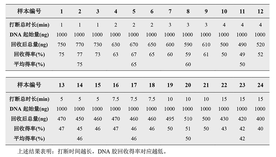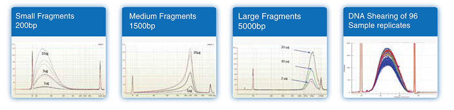可對100bp-5kb范圍的DNA片段進行高質量的剪切,可得到高度重復的DNA剪切結果,并且DNA片段緊密分布在指定的大小范圍內,不同初始樣本量均能得到一致性的片段。