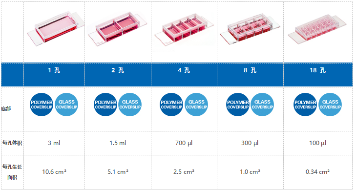 帶有1個大孔的腔室載玻片,用于活細胞成像、免疫熒光和高分辨率(polymer聚合物塑料底)/超高分辨(玻璃底)顯微鏡成像: