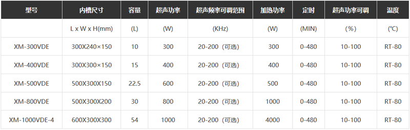 2、超聲功率及頻率:清洗機的每個超聲換能器發射功率為50W。超聲電功率10-100%任意調節;超聲頻率可根據要求自動切換,可選切換頻率為三頻 四頻十一頻十三頻等(標準出廠模式為三頻),頻率可選調范圍:20-200KHz可選,符合藥典要求。